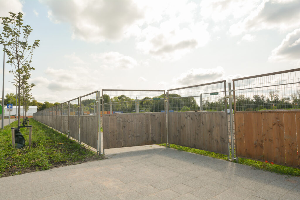 Speciaal voor projecten waar de hekken er voor langere tijd staan, kunnen we het hekwerk semi-permanent plaatsen. Bij deze methode worden stalen buizen de grond in geslagen, waar de hekken aan vast worden gezet. Het resultaat is een strakke en stevige hekkenlijn.