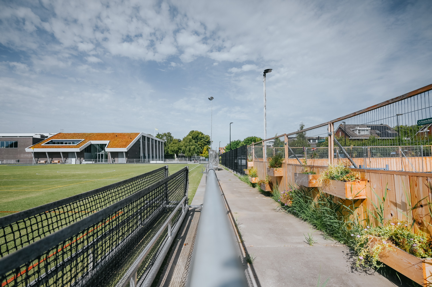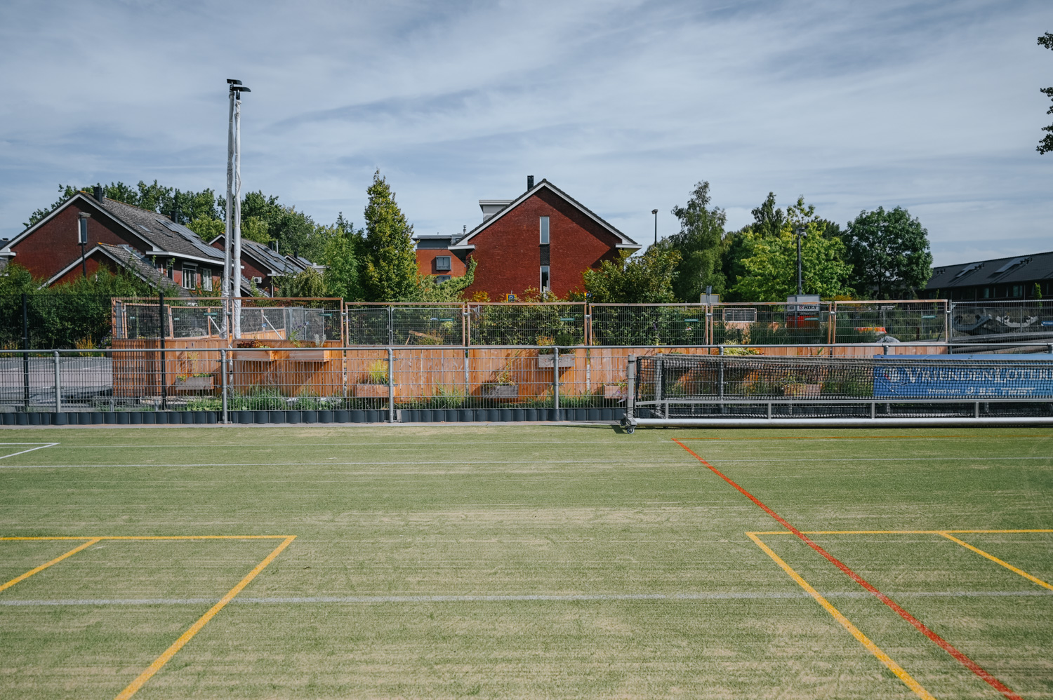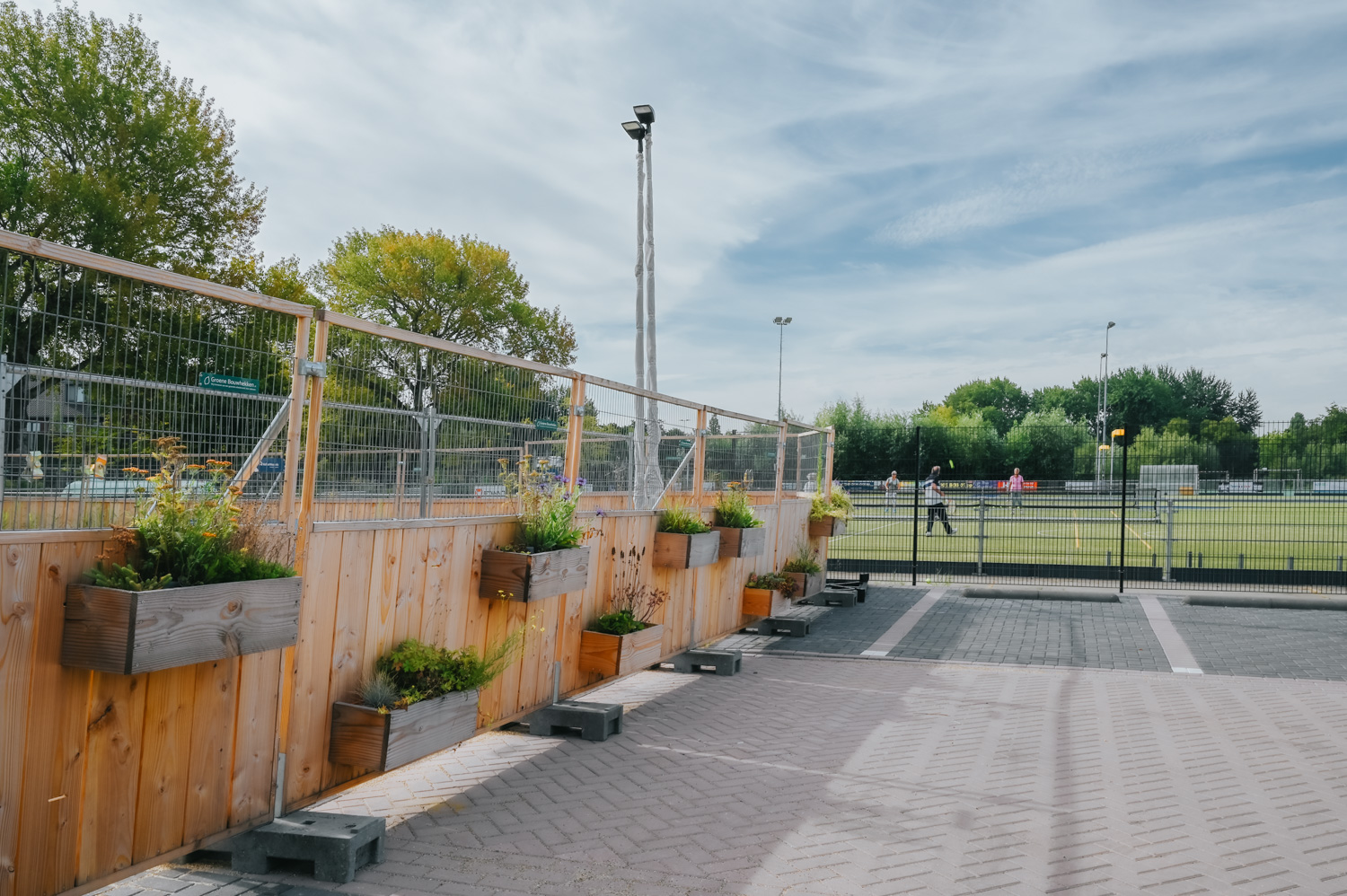 Een mooi voorbeeld van hoe groene bouwhekken niet alleen bijdragen aan een prettiger straatbeeld, maar ook sociale impact kunnen hebben.