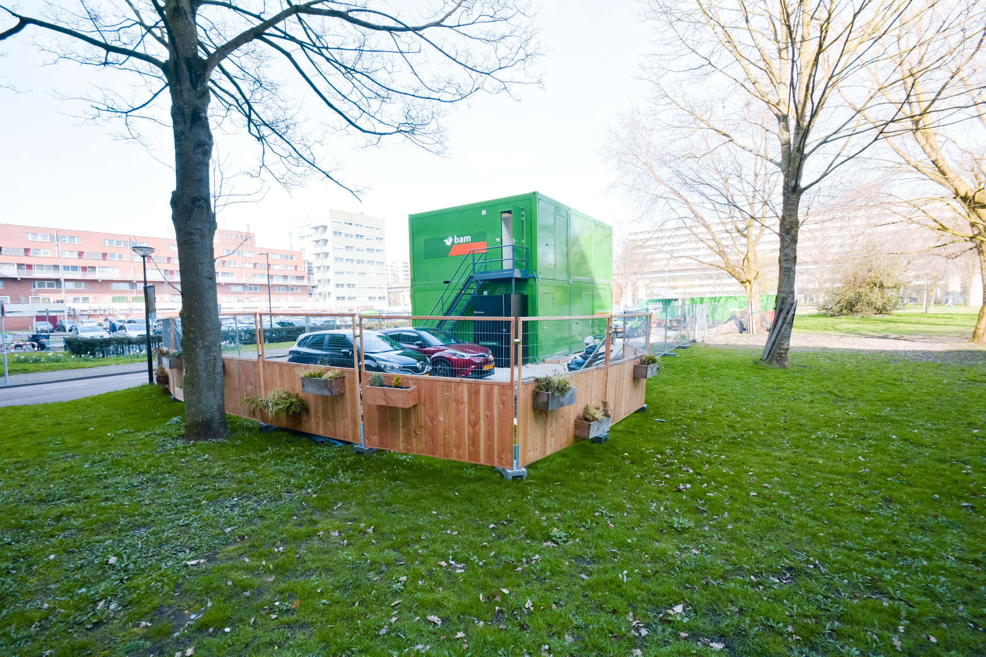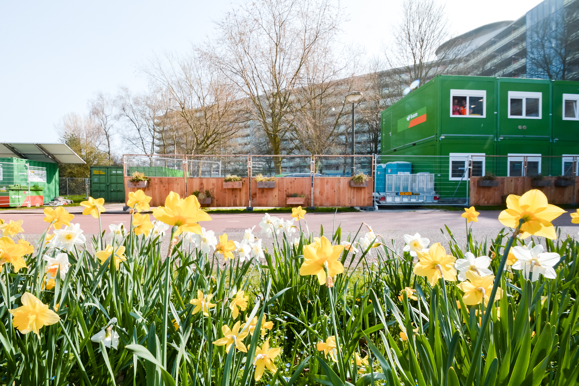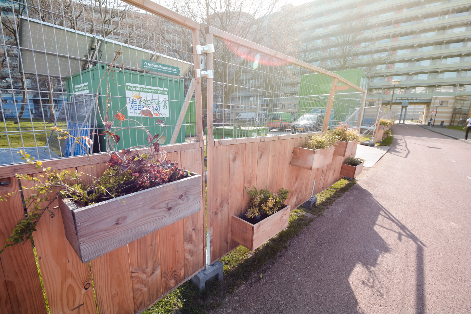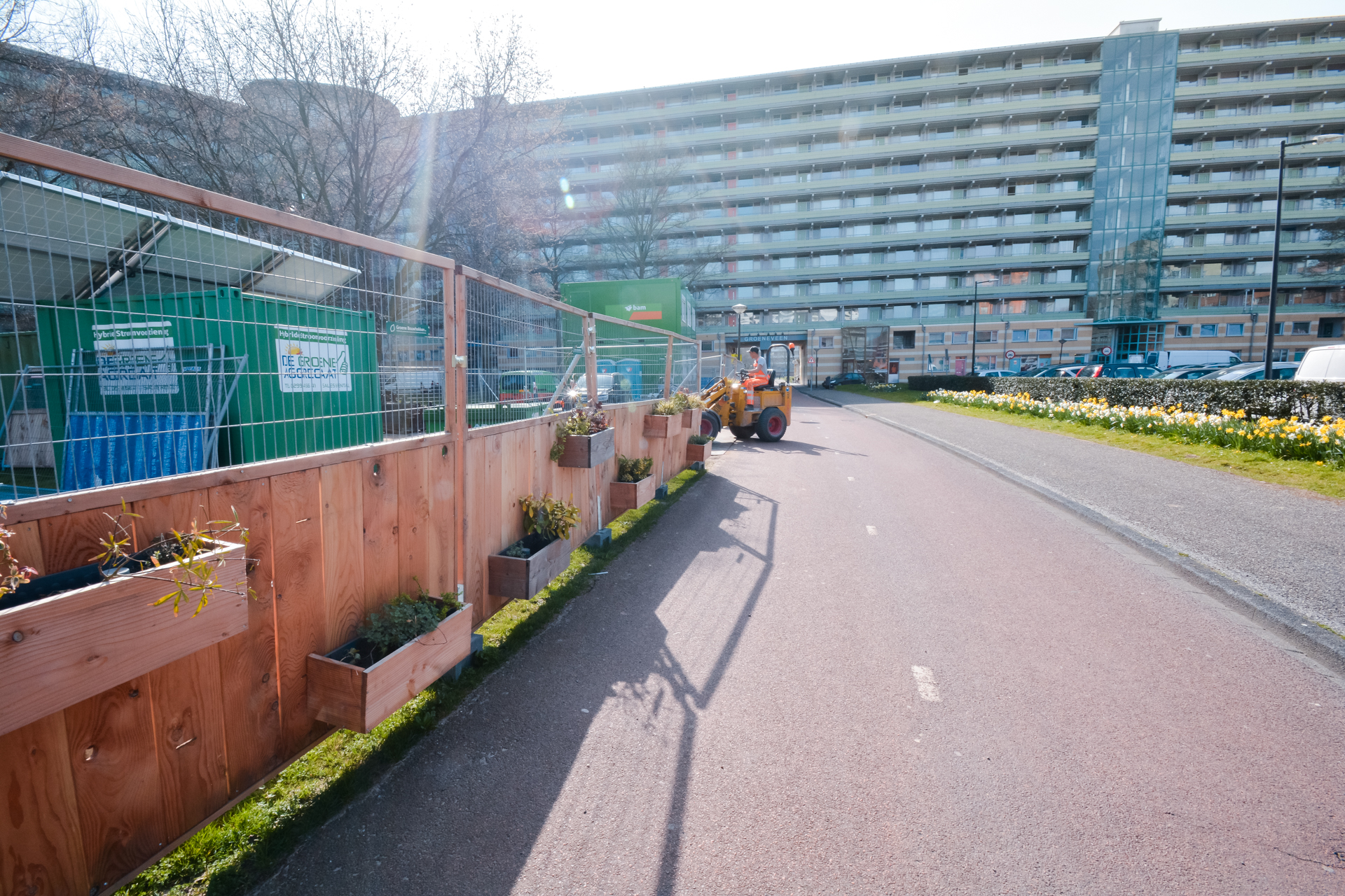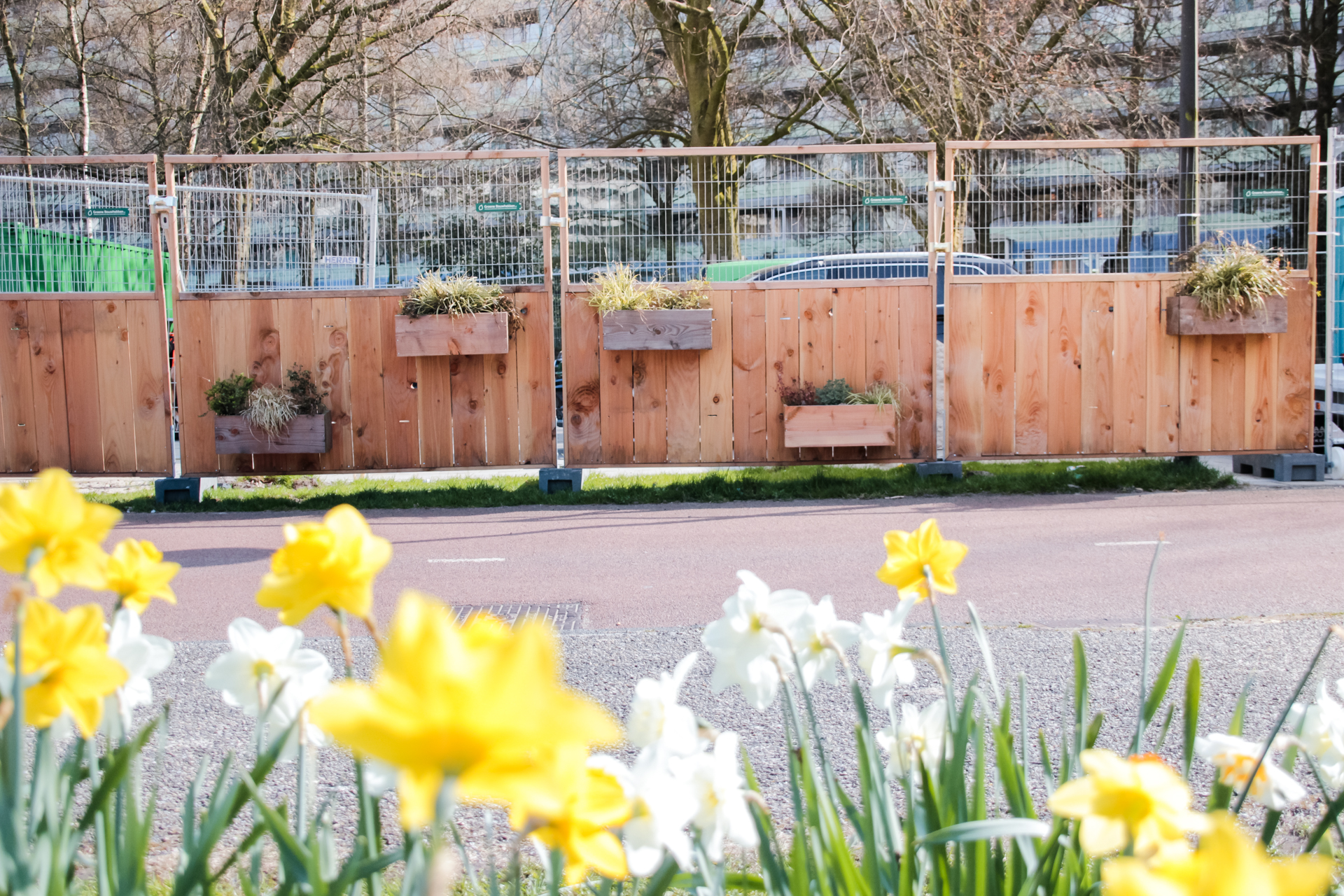 Er wordt hard gewerkt in de Bijlmer. Er worden in totaal 23 Groene Bouwhekken met 40 plantenbakken ingezet om de materiaal opslag en bouwketen af te schermen. Fiets je nu door Groeneveen, dan fiets je tussen bloemen en bouwhekken. Een kleurrijk geheel.