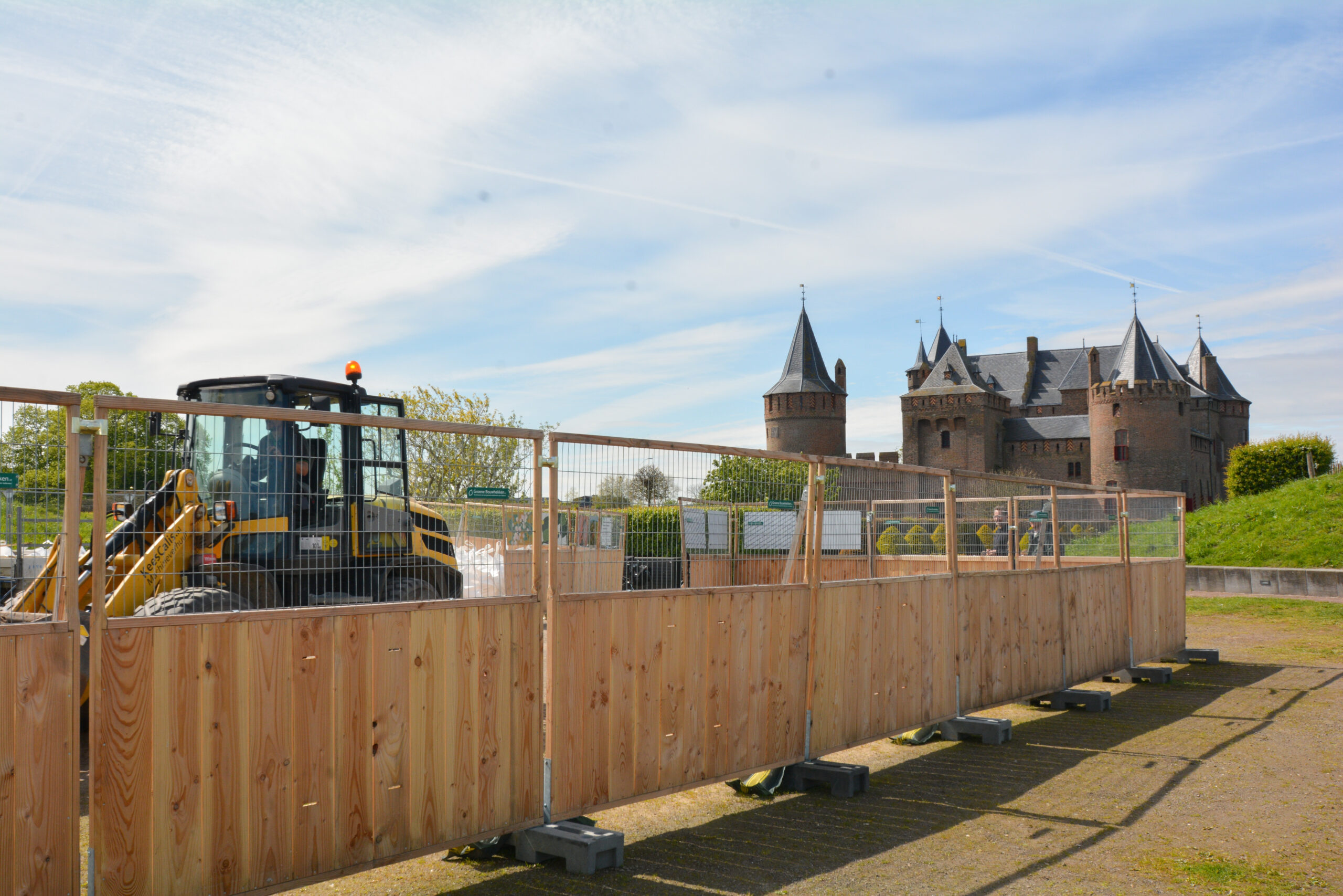 Daarom kiest Muiderslot voor de houten bouwhekken met plantenbakken eraan. De meeste hekken staan bij het openluchttheater, waar de opslag van alle bouwbenodigdheden. Het Muiderslot heeft naast het bijzondere kasteel een mooie tuin aangelegd. De kennis van groen is er genoeg, daarom heeft Muiderslot zelf de plantenbakken gevuld en onderhouden zij ook dit groen.