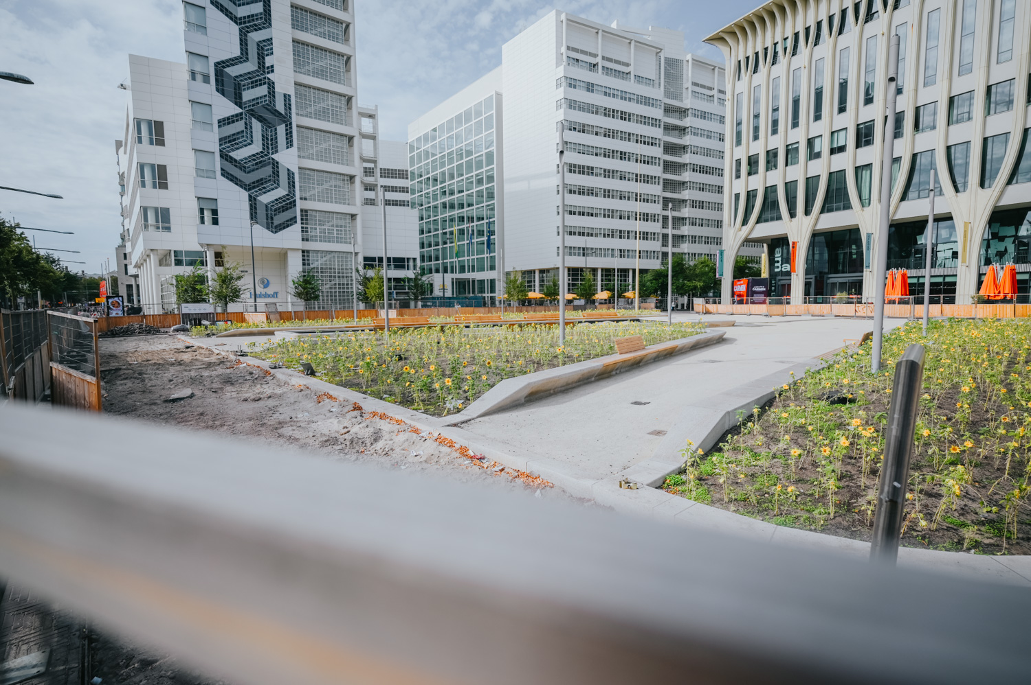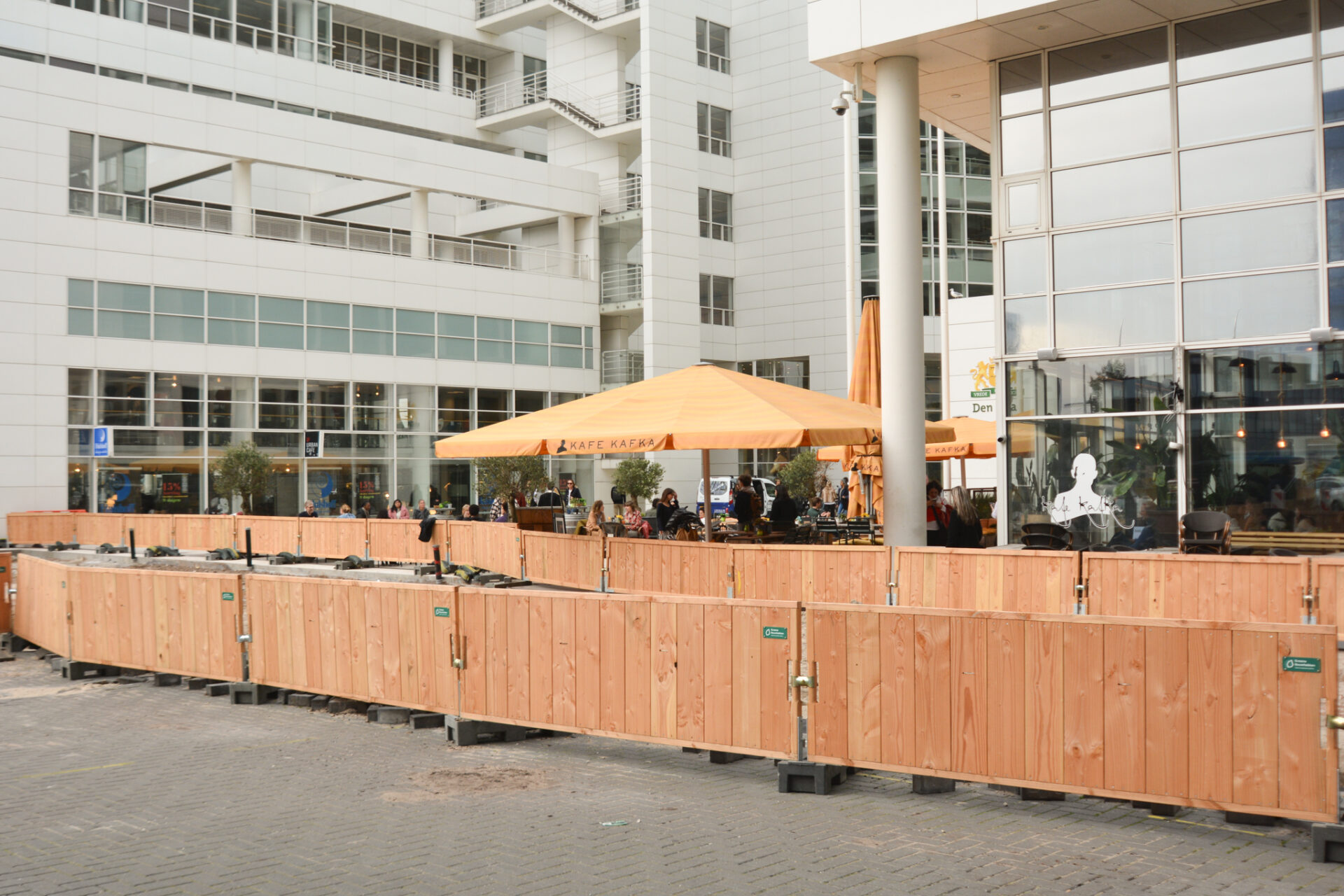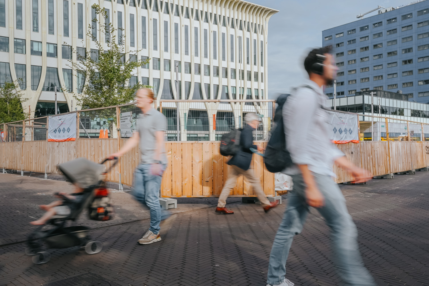 Tijdens de werkzaamheden is het plein afgezet met houten bouwhekken en lage infrahekken. Het plein is een belangrijke doorloop route vanaf het station. Ook grenst er een terras aan het plein. Voor de vele voorbijganger heeft Habo GWW voor een aantrekkelijke afscheiding gekozen.