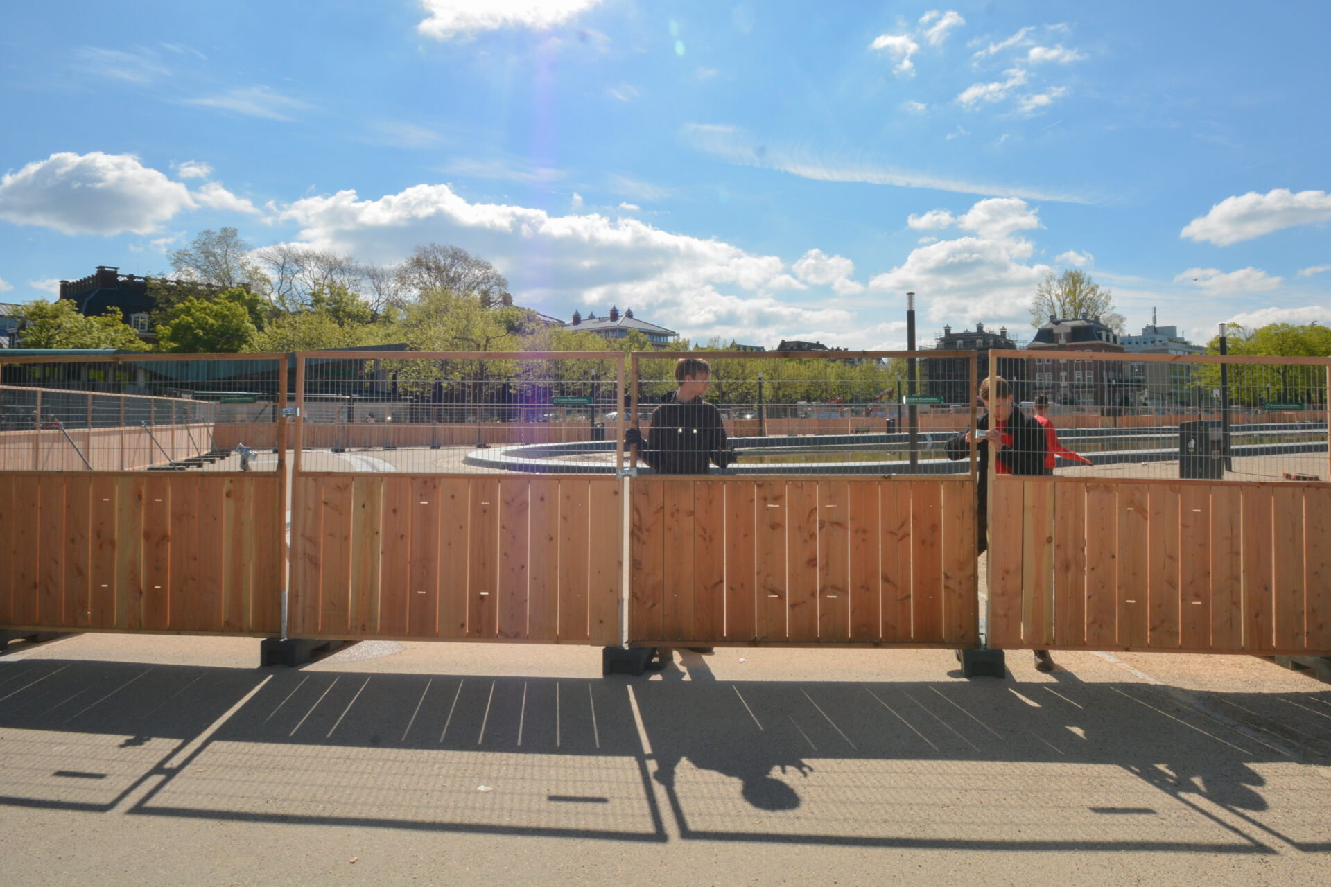 De vijver lekt al langer en wordt al jaren niet gebruikt. Tijd voor een nieuwe vijver dus! Je kunt je vast voorstellen hoeveel mensen dagelijks langs het museumplein lopen. Een bouwplaats maakt het wel iets minder gezellig. Daarom kiest Rots Maatwerk voor onze houten bouwhekken. Zo wordt de afscheiding aantrekkelijker voor al het langslopend publiek.